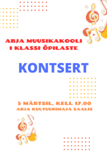 I klassi õpilaste kontsert neljapäeval, 5 märtsil k. 17.00.
